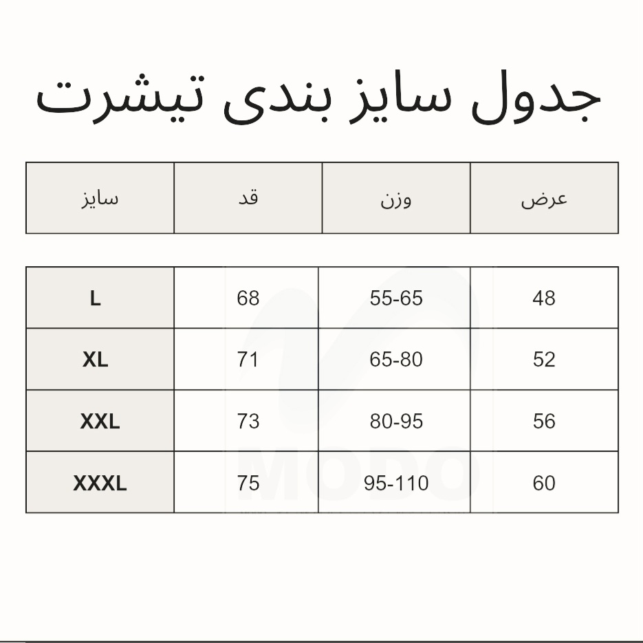 سایز 3XL عرض ۶۰ قد ۷۵ مناسبه ۹۵ تا ۱۱۰ کیلو